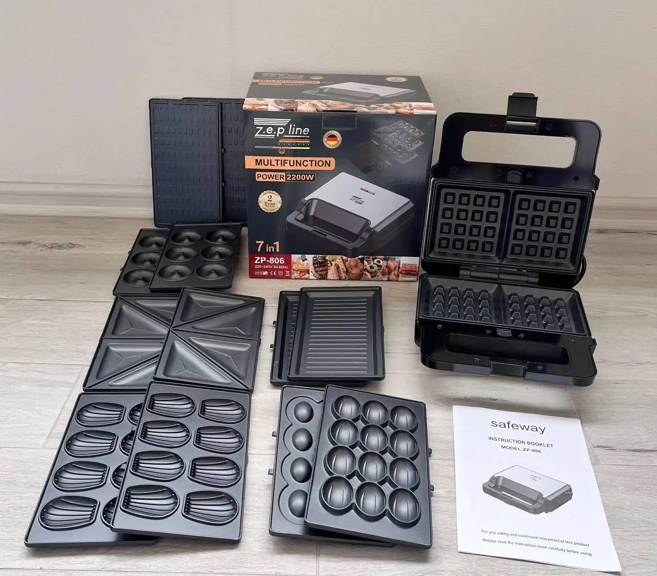 Мультимейкер 7в1 Zepline ZP-806 2200 Вт — це універсальний і практичний кухонний пристрій, який дає змогу готувати різноманітні сендвічі в домашніх умовах. Завдяки своїй багатофункціональності, вона стане незамінним помічником у приготуванні сніданку, обіду або вечері.
