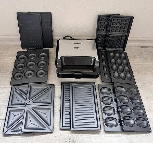 Мультимейкер (мультипекар) – це чудовий спосіб заощадити час і за лічені хвилини приготувати гарячі бутерброди з різними начинками, бельгійські вафлі, сендвічі, донатси, горішки, печиво Мадлен, тости.