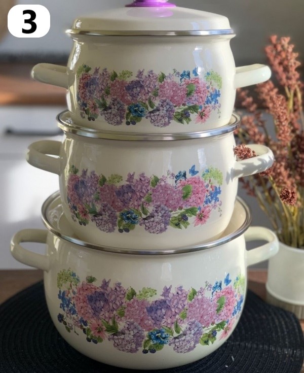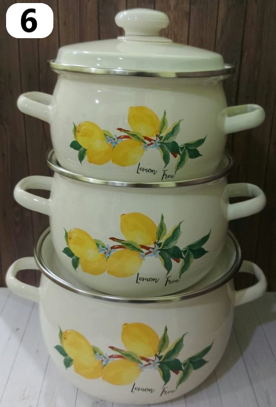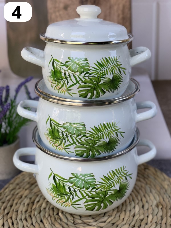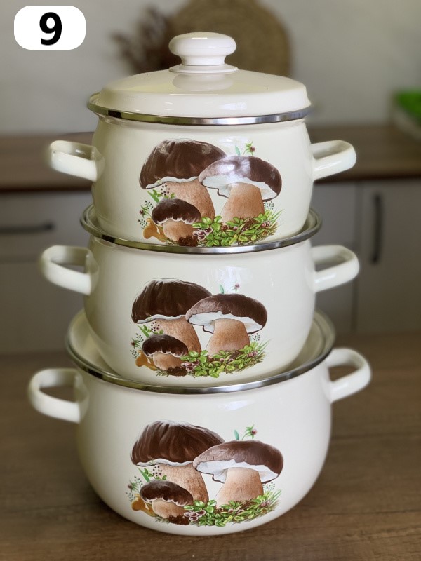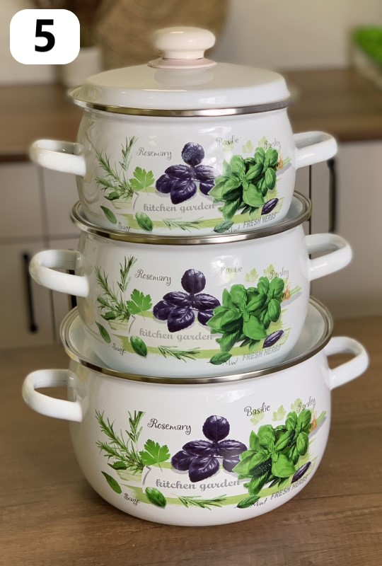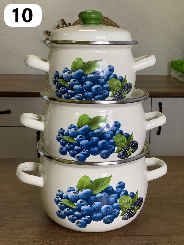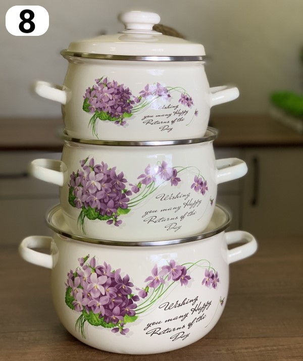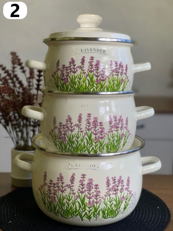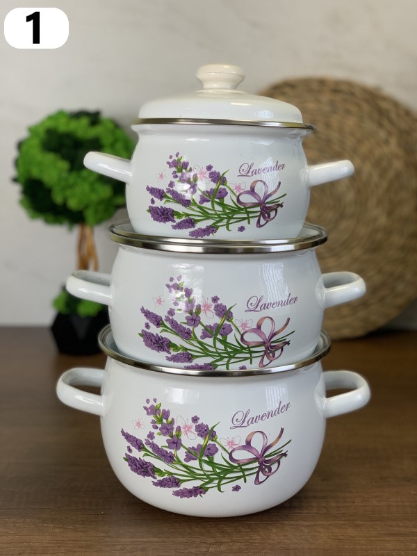 В наявності також є набір каструль з меншим об’ємом (1,5/2,5/3,5л) вартістю 999 грн. Наявність візерунків уточнюйте у менеджера.